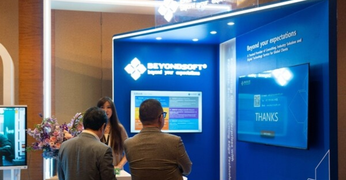 Beyondsoft actively collaborates with regional partners. This year, it not only participated in the FutureChina Global Forum but also hosted a closed door roundtable on AI and talent transformation. The photo shows Beyondsoft’s booth at the forum. (Photo provided by Beyondsoft)